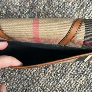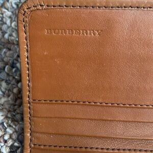 Burberry wallet, classic check, gold hardware. Has pretty significant use, pen marks and wear are pictured. No box/dust bag