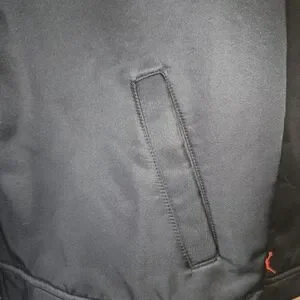 Good condition overall. Open front pockets, 1 zippered front pocket. Embroidered logos throughout. Velcro adjustable sleeves (near wrist). Fleece Lined.