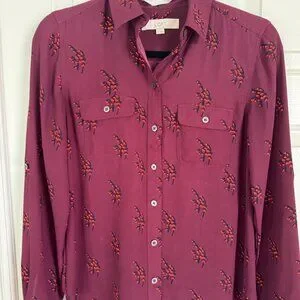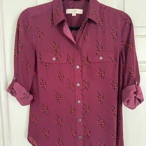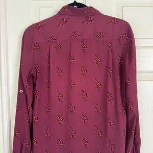Loft Maroon Print Long Sleeve Button Utility shirt, a little longer in the back