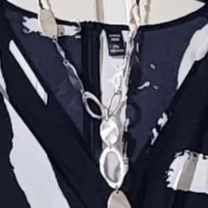 Elevate your evening look with this awesome high low , v neck, featuring a striking black and white pattern. V-neckline offers a flattering silhouette, adds a touch of elegance. Perfect for work or a cocktail night out, this dress combines modern style with timeless sophistication. FREE NECKLACE....light polyester ..so pretty.