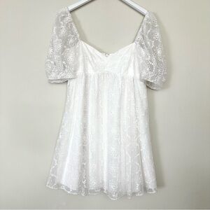 Add some summery romance to your special-occasion wardrobe with this Amanda Uprichard white mini dress, which features a relaxed babydoll silhouette and intricate eyelet patterning. If you're in the mood to accessorize, try a pair of gold-tone drop earrings.