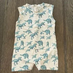 Kate Quinn sleeveless romper. 100% organic cotton. Like new, hardly worn. No rips, wear or stains. Only air dried. Size 18-24 months, I’d say it’s true to size. Snap closure for diaper changes.