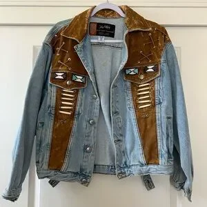 Vintage Authentic Johnny Hallyday Western Passion Denim and Suede Jacket Size M