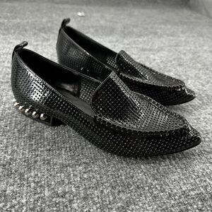 Jeffrey Campbell Barnett Black Studded Loafers Perforated Size 7