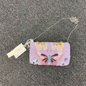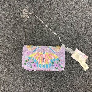 This stunning crossbody bag features a vibrant beaded butterfly adorned with colorful embellishments. Beautiful in person! Perfect for adding a pop of color to any outfit.