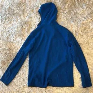 R1 air hoody with textured fabric. Features a convenient chest pocket and 2 hand pockets. Pictures with tag are most representative of color.