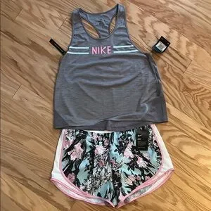 Nike Gray Tank and Floral Athletic Shorts Set NWT
