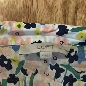 Vibrant floral sleepwear by LOFT. Features navy accents and a colorful pattern.
