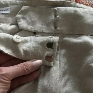 tan linen blend Loft Peyton trouser size 4. Front pockets, small plates in the front.