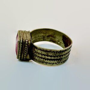 Afghan Ring, Middle Eastern, Pink Jewel, Vintage, Kuchi, Size 9 1/2, Patina