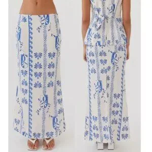 NWT Peppermayo Born For Bordeaux Linen Midi Skirt Floral Wave Women's Size US 2