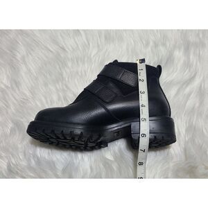 • Unique, L.L. Bean black pebbled leather and suede booties with a chunky heel and 2 velcro strap closure.