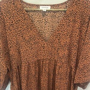 Mittoshop Brown Leopard V-Neck Midi Dress