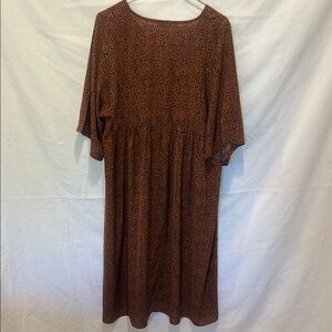 This casual sundress from Mittoshop showcases a rich brown hue with a flattering V-neckline and 3/4 dolman sleeves. Its midi length and flowing silhouette offer a relaxed yet stylish look, perfect for everyday wear.