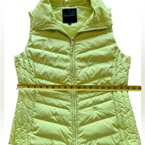 Talbots Down Puffer Vest, Chartreuse Green, women’s Medium, excellent preowned condition. Chevron quilting adds texture and just-right heat retention, zip up front, zippered hip pockets. lime green, perfect for layering in transition seasons. Please see pictures for detail and measurements. Sorry, NO faux fur collar included. Ready to ship from our shop!