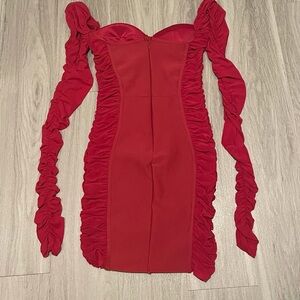 Puff Long Sleeve Red Ruched Dress. Size Large