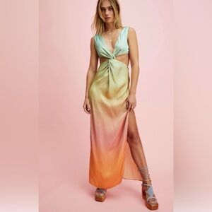 A striking and elegant BAOBAB cover-up dress, featuring multicolor ombré, a deep slit, and a wraparound cutout at the waist. Lean into the special-occasion feel of the piece by pairing it with heeled sandals.