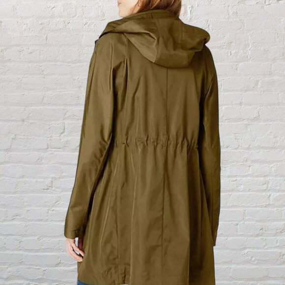 J. Jill Hooded Anorak Jacket XL Olive Green Utility Coat Cinched Cotton Lyocell