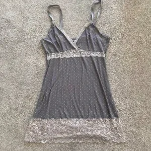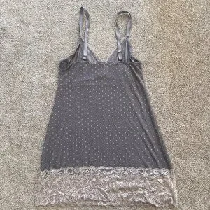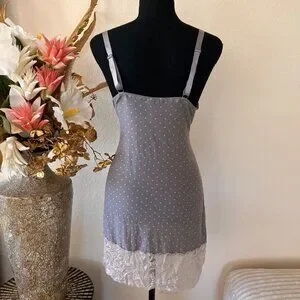 Y2K Grey Babydoll Polka Dot Lace Mini Dress / Lingerie Top XL