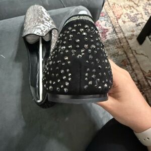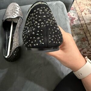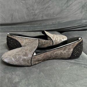 Chic black shimmery leopard print shoes by Brian Atwood. Stylish and refined.