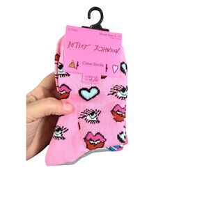 #0833 Betsey Johnson NWT Wake Up in Style 3 Pack Crew Socks Shoe Size 5-10