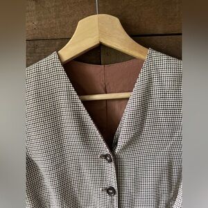 Vintage Reversible Vest Brown Houndstooth & Solid Camel Button Up Preppy Vintage Reversible Vest | Brown Houndstooth & Solid Camel Button Up | Preppy Academia Layering Piece