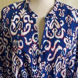 Crafted for versatility and style, the Zara Summer Mini Dress is a charming addition to any wardrobe. Featuring a crisp blue, white, and red paisley pattern, this dress boasts a flattering V-neck and long sleeves. The button-front closure adds a touch of classic elegance, making it ideal for a range of occasions from a casual day out to a cocktail party or even a business event. Comfort meets sophistication in this machine-washable garment, constructed with a soft blend of polyester and viscose. The dress is designed to be regular fit in size L, ensuring ease of movement and a stylish silhouette. Whether you're traveling, attending a Holy Communion, or simply enjoying the bohemian vibe, this colorful mini dress is suitable for every season and makes a vibrant statement wherever you go.