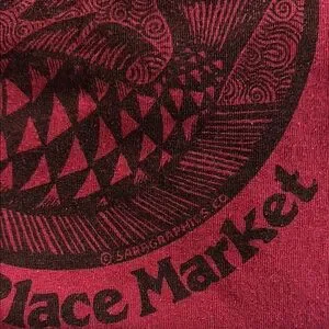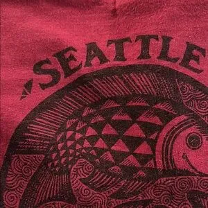 Vintage Red t-shirt featuring a Seattle Pike Place Market graphic. Comfortable and stylish.
