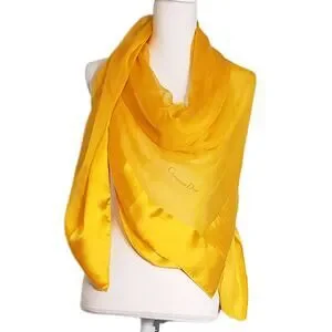 Elegance in Amber: Christian Dior Chiffon and Satin Edged Scarf