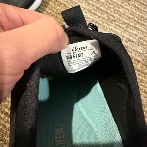 Clove nursing tennis shoes in black/blue/white color scheme. In very good used condition besides a few small marks on the white part of the shoe and slight creasing from being in storage.