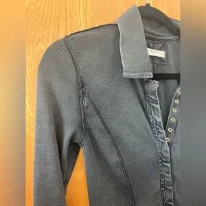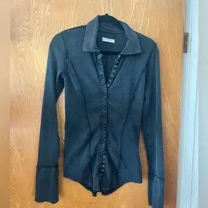 Free People Black Fitted Buttoned Blouse M