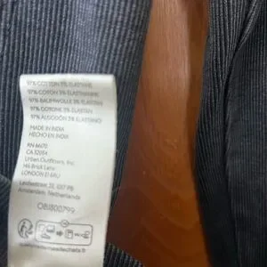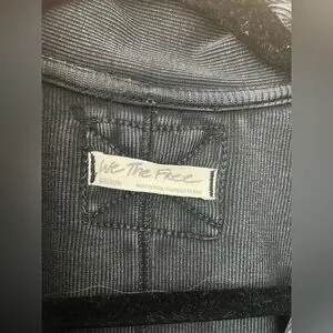 This chic black blouse by Free People showcases a fitted design with a notched collar, offering a sleek and sophisticated look. Its buttoned style and tailored fit make it an ideal choice for both professional and casual occasions.