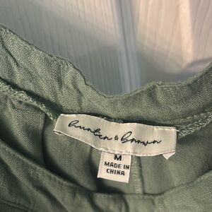 Hunter & Brown BOHO Wide Leg Cropped One Piece Sleeveless Jumpsuit Green Medium