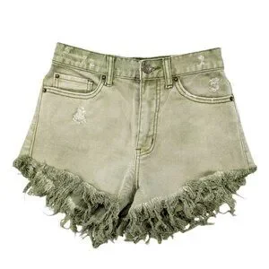 BDG High-Rise Cheeky Shorts 25 Green Frayed Hem --- 100% Cotton
