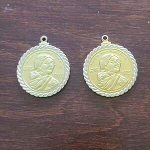 Gold Tone and Silver Tone Medallion Pendant, Indian Relief, Sacagawea, Set Of 2