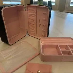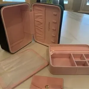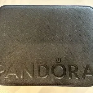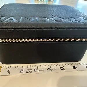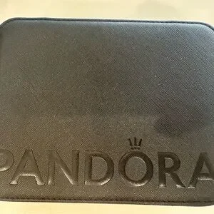 Elegant black jewelry box with Pandora branding. Perfect for storing your precious items.