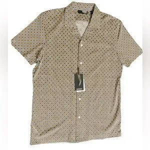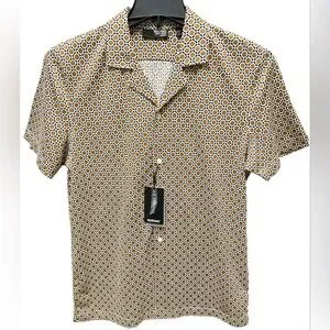 From Murano Liquid Luxury Slim Fit Notch Collar Button-Up Shirt - Brown/White, Size M New With Tags ๐ท๏ธ