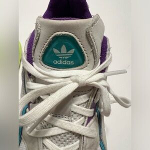 Adidas Tennis Shoes White With Purple, Green, & Blue Retro Size 7 Mens