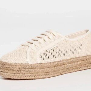 Superga Macrame Espadrille Sneakers. Woven raffia. 1.5" Braided jute platform. Cushioned cork footbed. Lace-up closure. Round toe. Rubber sole. Excellent condition, no signs of wear on upper, only worn once!
