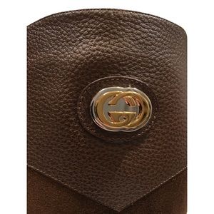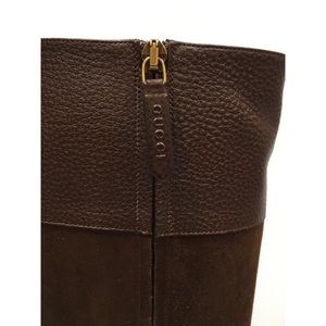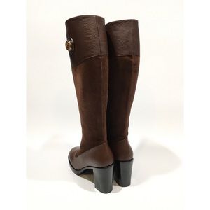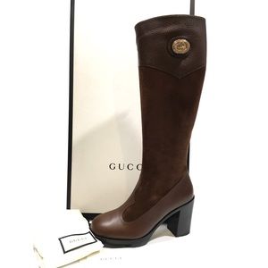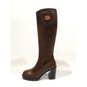 Elegant brown heeled boots by Gucci. Features a sleek design with a signature logo detail.