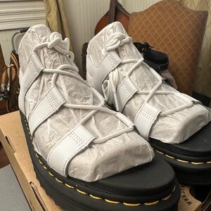 Experience the perfect blend of style and comfort with Dr. Martens gladiator sandals, featuring a striking black and white color scheme. These sandals boast a chunky platform sole and wrap-around laces for a bold, modern look. Ideal for making a statement, they combine the iconic Dr. Martens design with a contemporary twist.