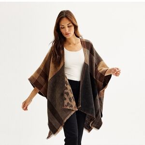 Finish off your look with this charming plaid and animal print reversible women's ruana from Nine West.