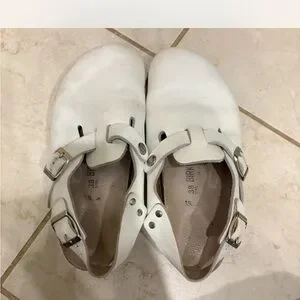 White Birkenstock Clogs with Buckles