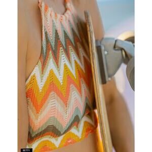 The Betty is a modern take on a vintage vibey top. Her open back has a tie closure at the hem and her halter neck as an adjustable tie closure.