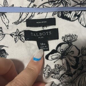 Talbots Black and White Floral Butterfly Print Blouse - 18W