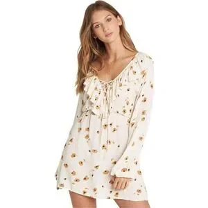 Billabong Women's Take Away Floral Ruffle Balloon Sleeve Dress size Small