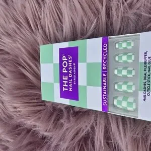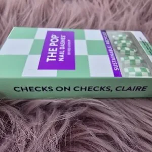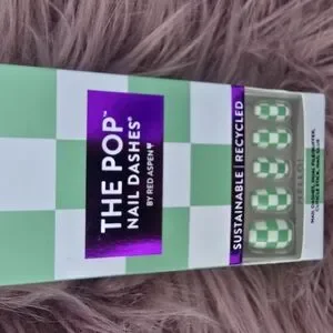 Stylish green and white nail dashes by Red Aspen. Sustainable and recycled.