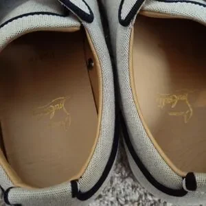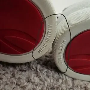 These Christian Louboutin sneakers feature a sleek gray and white color palette, highlighted by a minimalist design with a gray suede upper and a durable white rubber sole. The low-top silhouette is enhanced by white laces and contrasting black trim, offering a sophisticated look perfect for everyday wear. I have done my best to highlight the areas that are not perfect. Let me know if you need/want more pictures.