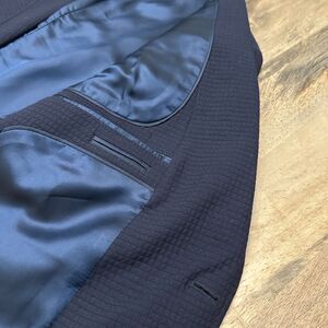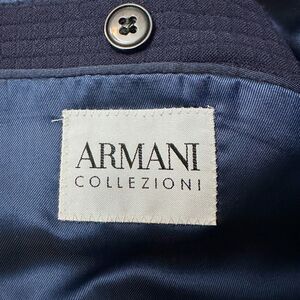 Armani Collezioni Technical Waffle-Textured Single-Breasted Jacket in Navy Blue. It features a slim fit, two-button closure, notch lapels, and side patch pockets. Has some stretch. The waffle texture gives it a casual yet sophisticated look, suitable for both formal and informal occasions. 2015 produced,. D/C and hard to find. The Collezioni line was discontinued in 2017. This jacket was replaced with the now popular (and very expensive ICON jacket).