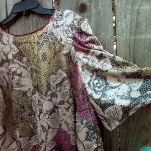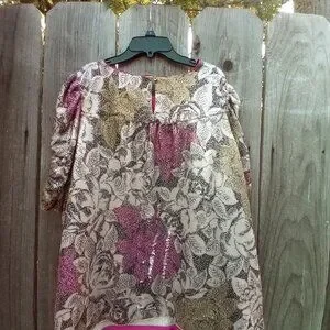 Anthropologie Top Womens Sz 18W Pink Marie Sequin Puff Sleeve Blouse New Floral